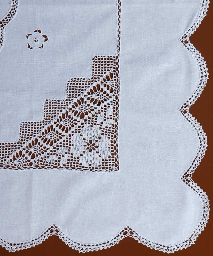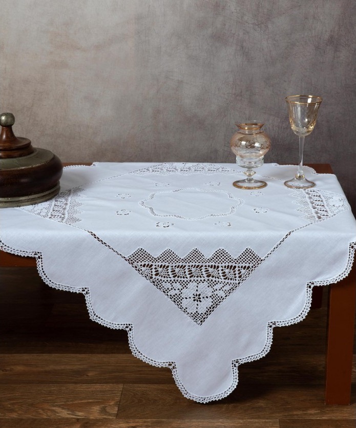 Καρέ με πλεκτό σε βαμβακερό πανί. Σε διάσταση 90Χ90 εκ. – 100% βαμβακερό – σε λευκό χρωματισμό.