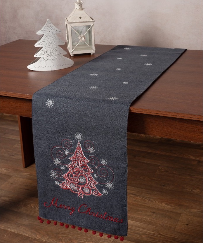 Χριστουγεννιάτικη τραβέρσα με απλικέ και πον πον.
