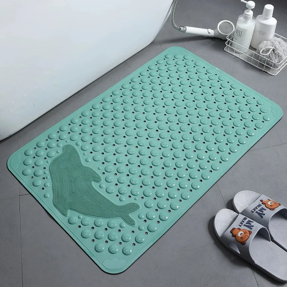 Αντιολισθητικό πατάκι μπάνιου σε διάσταση 45×75 cm, ιδανικό για χρήση μέσα στο ντους, δίπλα στην μπανιέρα ή σε χώρους με υγρασία. Διαθέτει επιφάνεια με ανάγλυφες φυσαλίδες για πιο σταθερό πάτημα, ενώ το ειδικό σχέδιο δελφινιού βοηθά στο απαλό τρίψιμο της πατούσας και μπορεί να χρησιμοποιηθεί και για απολέπιση/τρίψιμο νεκρών κυττάρων.