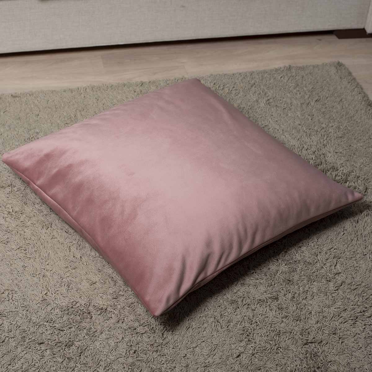 Μονόχρωμη διακοσμητική μαξιλαροθήκη δαπέδου από αλέκιαστο βελούδο ύφασμα.
