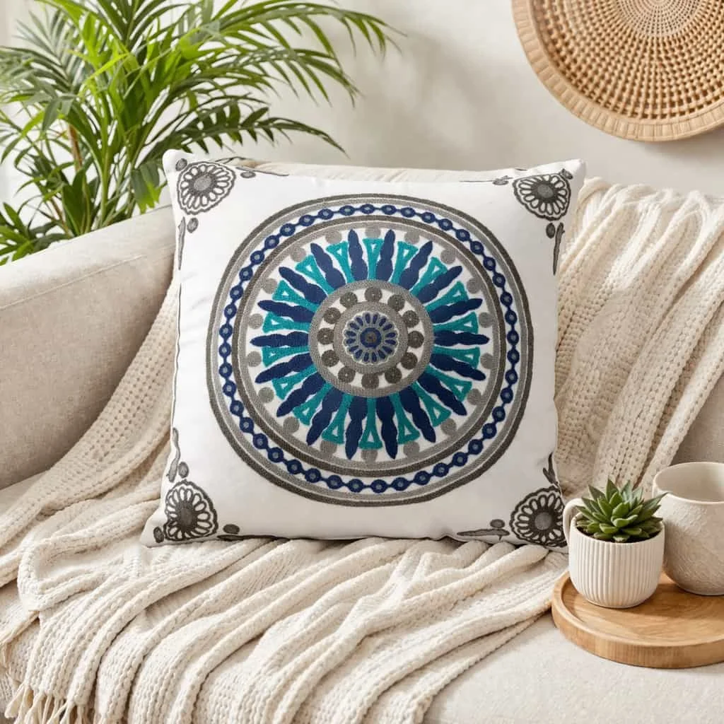 Εντυπωσιακή θήκη μαξιλαριού με κέντημα (διάτρητο/ανοιχτό κέντημα) που δίνει χαρακτήρα στον καναπέ, στο κρεβάτι ή στην πολυθρόνα! Το σχέδιο είναι κεντημένο επάνω στη θήκη και δημιουργεί ανάγλυφη, διακοσμητική αίσθηση, ιδανική για να ανανεώσετε άμεσα τον χώρο σας χωρίς αλλαγές στη διακόσμηση.