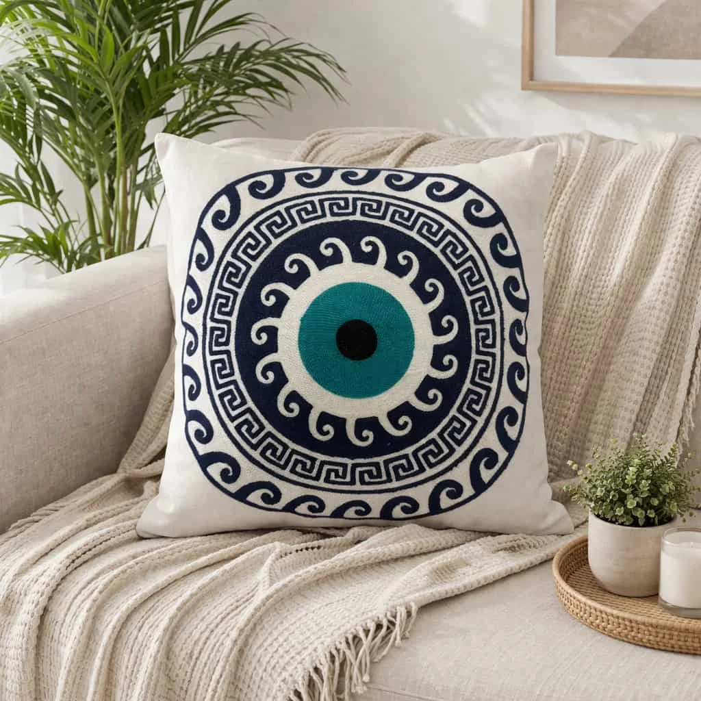 Εντυπωσιακή θήκη μαξιλαριού με κέντημα (διάτρητο/ανοιχτό κέντημα) που δίνει χαρακτήρα στον καναπέ, στο κρεβάτι ή στην πολυθρόνα! Το σχέδιο είναι κεντημένο επάνω στη θήκη και δημιουργεί ανάγλυφη, διακοσμητική αίσθηση, ιδανική για να ανανεώσετε άμεσα τον χώρο σας χωρίς αλλαγές στη διακόσμηση.