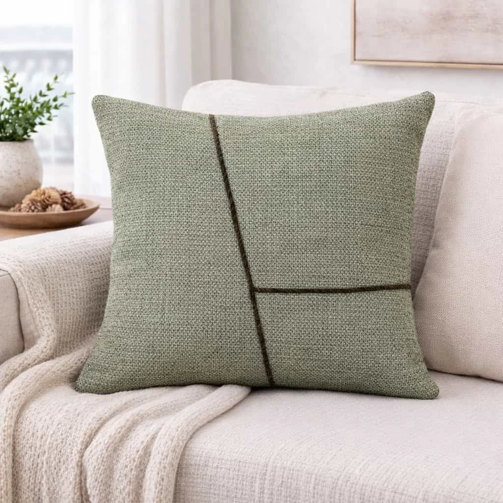 Διακοσμητική μαξιλαροθήκη 45×45 cm με κομψό κεντρικό σχέδιο patchwork. Ο συνδυασμός χρωμάτων δίνει μοντέρνα και ήρεμη αισθητική, ιδανική για καναπέ, πολυθρόνα ή κρεβάτι.