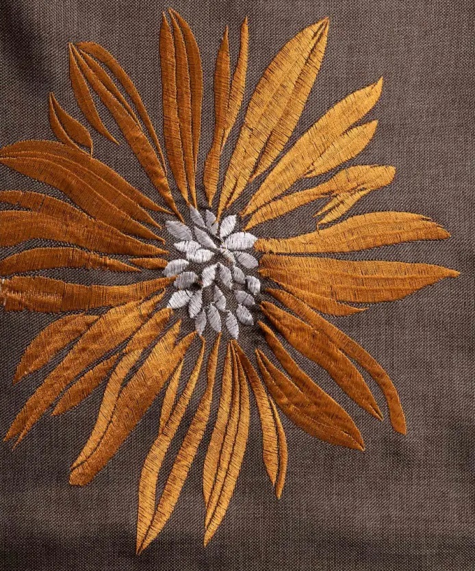 Κεντητό σχέδιο λουλουδιού σε ποικιλία χρωμάτων και διαστάσεων.