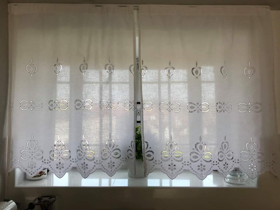 Υπέροχη παραδοσιακή κουρτίνα κοφτή, κατασκευασμένη από ύφασμα υψηλής ποιότητας με κομψό κοφτο  κέντημα, σε διαχρονικό λευκό χρώμα.