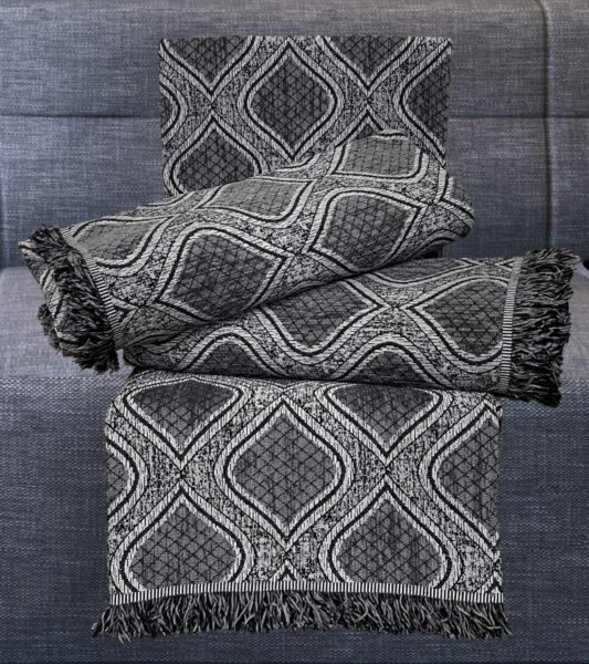 Πανέμορφα ριχτάρια σενίλ για την διακόσμηση του καναπέ σας! Σε γκρι/μαύρη απόχρωση. Διατίθεται σε σετ 3 τμχ. που περιλαμβάνει : ριχτάρι για μονοθέσιο 160Χ180 εκ. , ριχτάρι για διθέσιο 180Χ240 εκ. και ριχτάρι για τριθέσιο 180Χ300 εκ. (Οδηγίες πλυσίματος : στους 30 βαθμούς χωρίς στύψιμο)