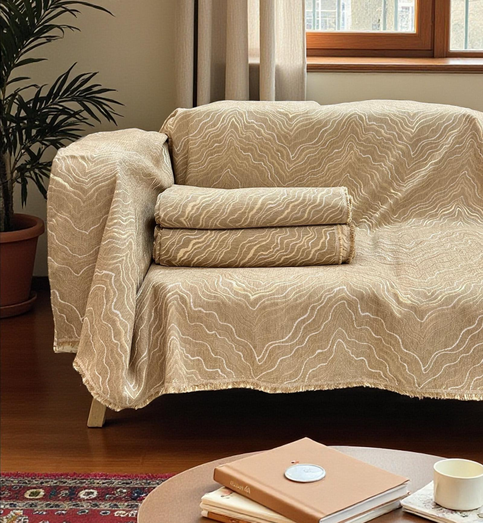 Πανέμορφα ριχτάρια σενίλ για την διακόσμηση του καναπέ σας! Σε μπεζ απόχρωση. Διατίθεται σε σετ 3 τμχ. που περιλαμβάνει : ριχτάρι για μονοθέσιο 160Χ180 εκ. , ριχτάρι για διθέσιο 180Χ240 εκ. και ριχτάρι για τριθέσιο 180Χ300 εκ. (Οδηγίες πλυσίματος : στους 30 βαθμούς χωρίς στύψιμο)
