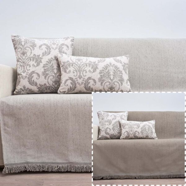 Πανέμορφα ριχτάρια σενίλ 2 όψεων – 2 χρωματισμοί  : του πάγου & elephant. Σε σετ 3 τμχ. για την διακόσμηση του καναπέ σας !