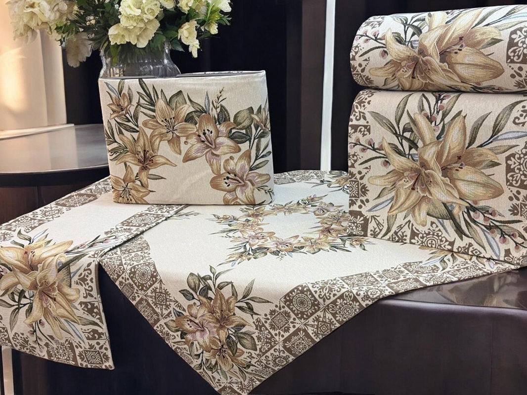 | Μέγεθος | καρέ 90Χ90 εκ., σετ 5 τμχ. (καρέ 90Χ90 εκ. , τραβέρσα 45Χ140 εκ. , τραπεζοκαρέ 140Χ140 εκ. , 2 Χ πετσετάκια 45Χ45 εκ.), τραβέρσα 45Χ140 εκ., τραπεζοκαρέ 140Χ140 εκ. |