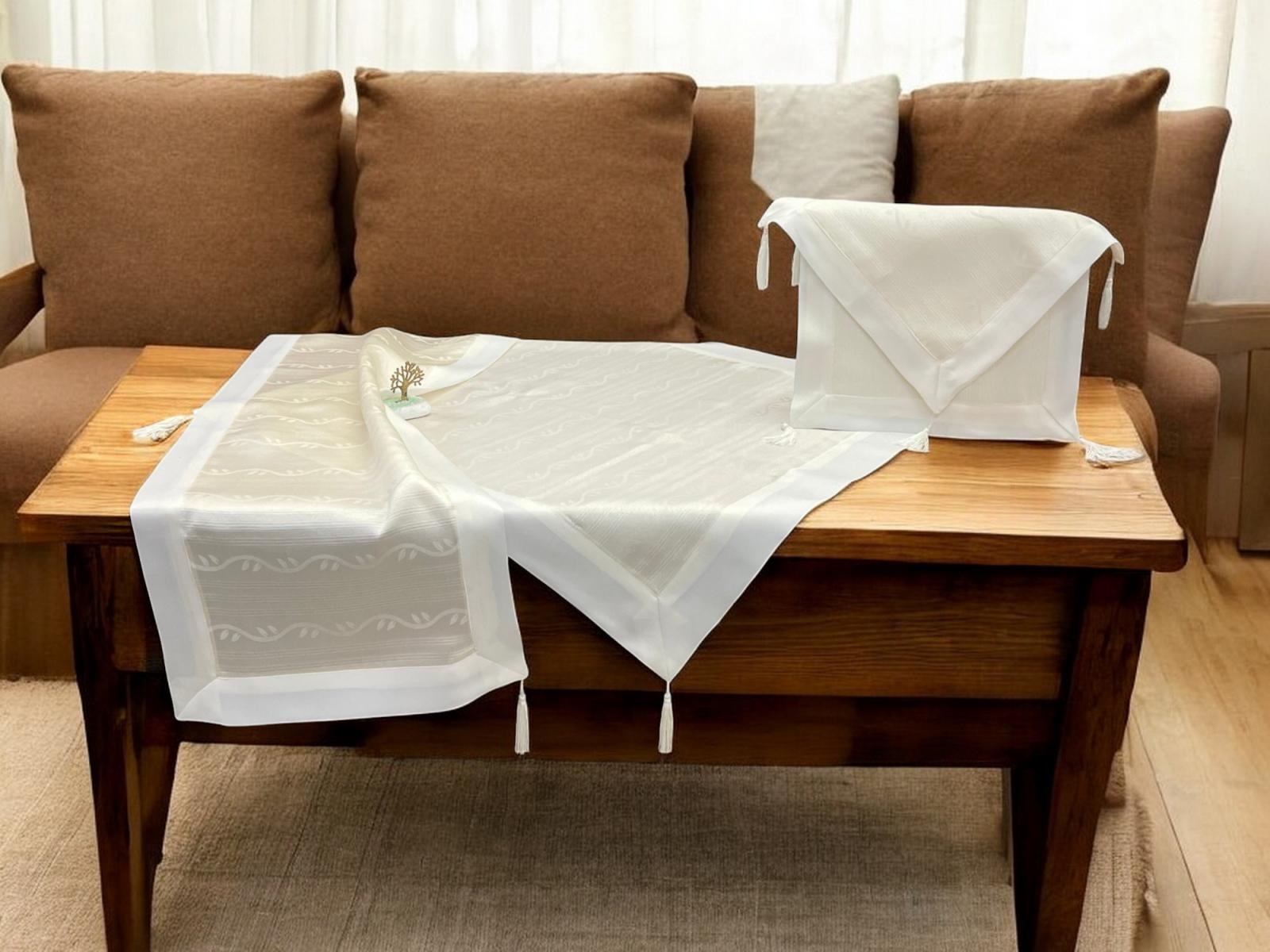Πανέμορφη σειρά με υπέροχα σχέδια ζακάρ και σατέν φάσα. Διαθέσιμη σε σετ 4 τμχ. αποτελούμενο από : καρέ 85×85 εκ. , σεμέν 40×110 εκ. και 2 πετσέτες 40×40 εκ. Για μοναδική διακόσμηση…