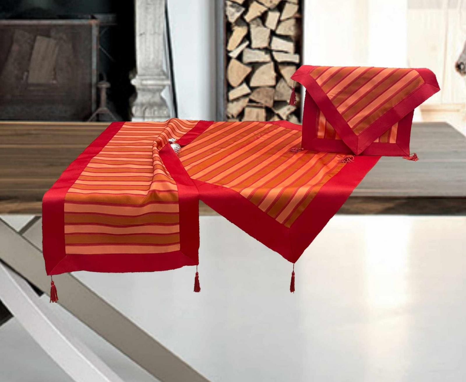 Πανέμορφη σειρά με υπέροχα σχέδια ζακάρ και σατέν φάσα. Διαθέσιμη σε σετ 7 τμχ. αποτελούμενο από : τραπεζοκαρέ 140Χ140 εκ. , 2 καρεδάκια 60Χ60 εκ. , καρέ 85×85 εκ. , σεμέν 40×110 εκ. και 2 πετσέτες 40×40 εκ.  Για μοναδική διακόσμηση…
