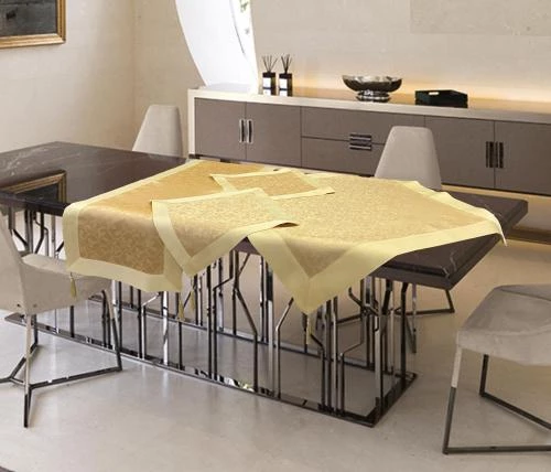 Πανέμορφη σειρά με υπέροχα σχέδια ζακάρ και σατέν φάσα. Διαθέσιμη σε σετ 7 τμχ. αποτελούμενο από : τραπεζοκαρέ 140Χ140 εκ. , 2 καρεδάκια 60Χ60 εκ. , καρέ 85×85 εκ. , σεμέν 40×110 εκ. και 2 πετσέτες 40×40 εκ.  Για μοναδική διακόσμηση…