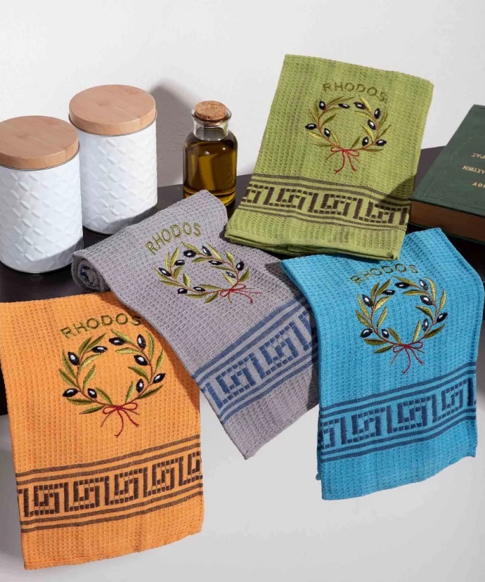 Σετ 12 τμχ. ποτηρόπανα στεφάνι ελιάς χρωματιστό RHODES
