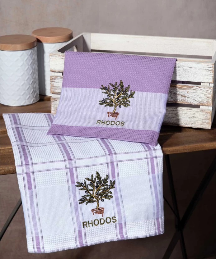 Σετ 2 τεμαχίων βαμβακερά ποτηρόπανα με κέντημα.