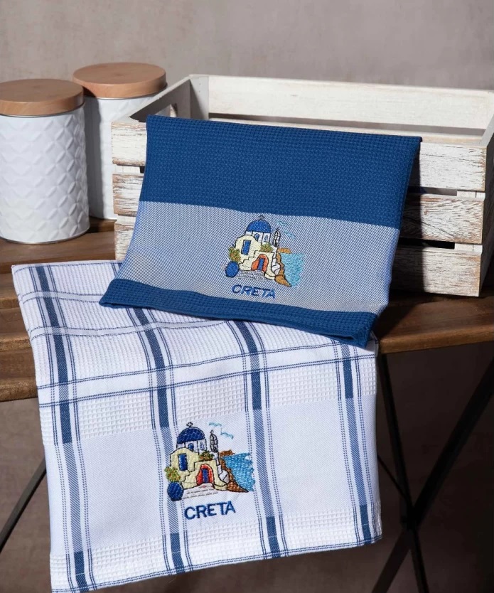 Σετ 2 τμχ. ποτηρόπανα ΕΚΚΛΗΣΙΑ μπλε CRETA
