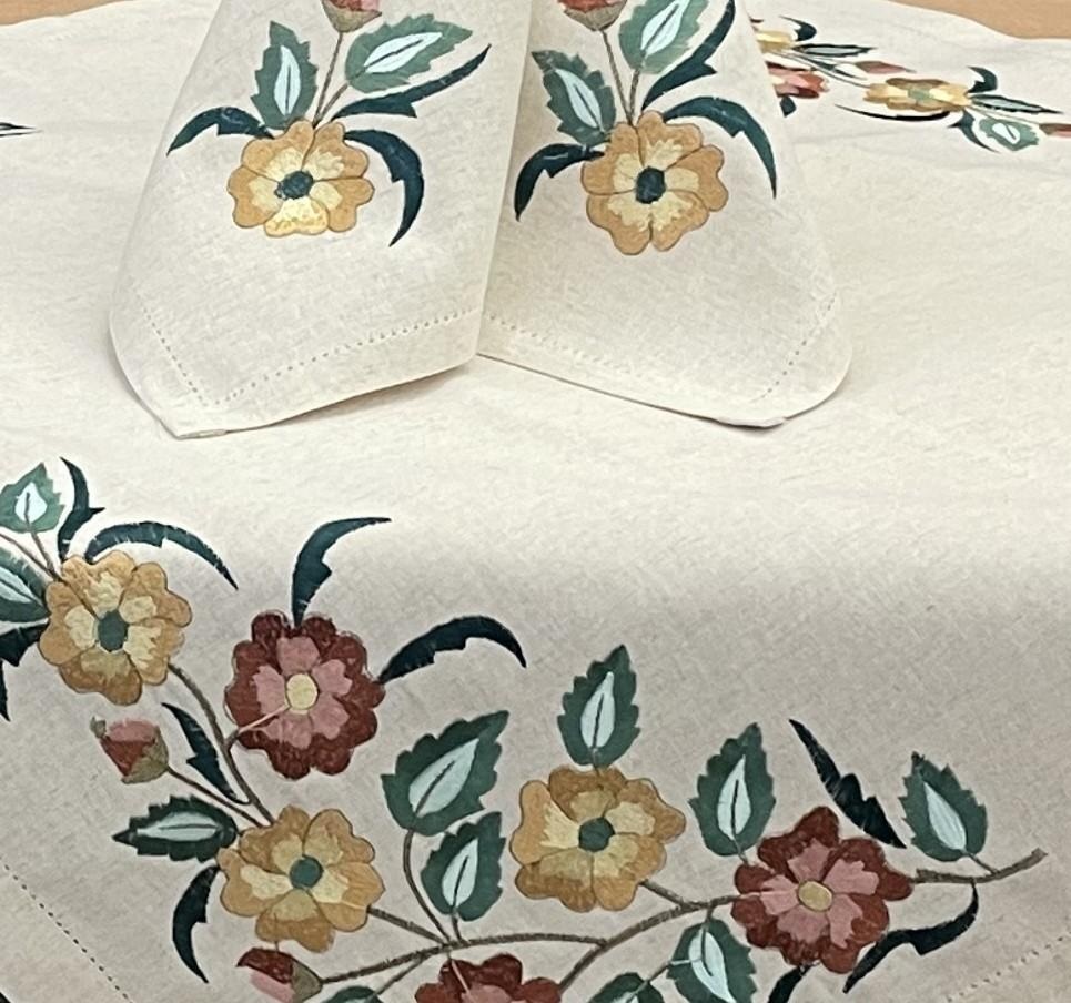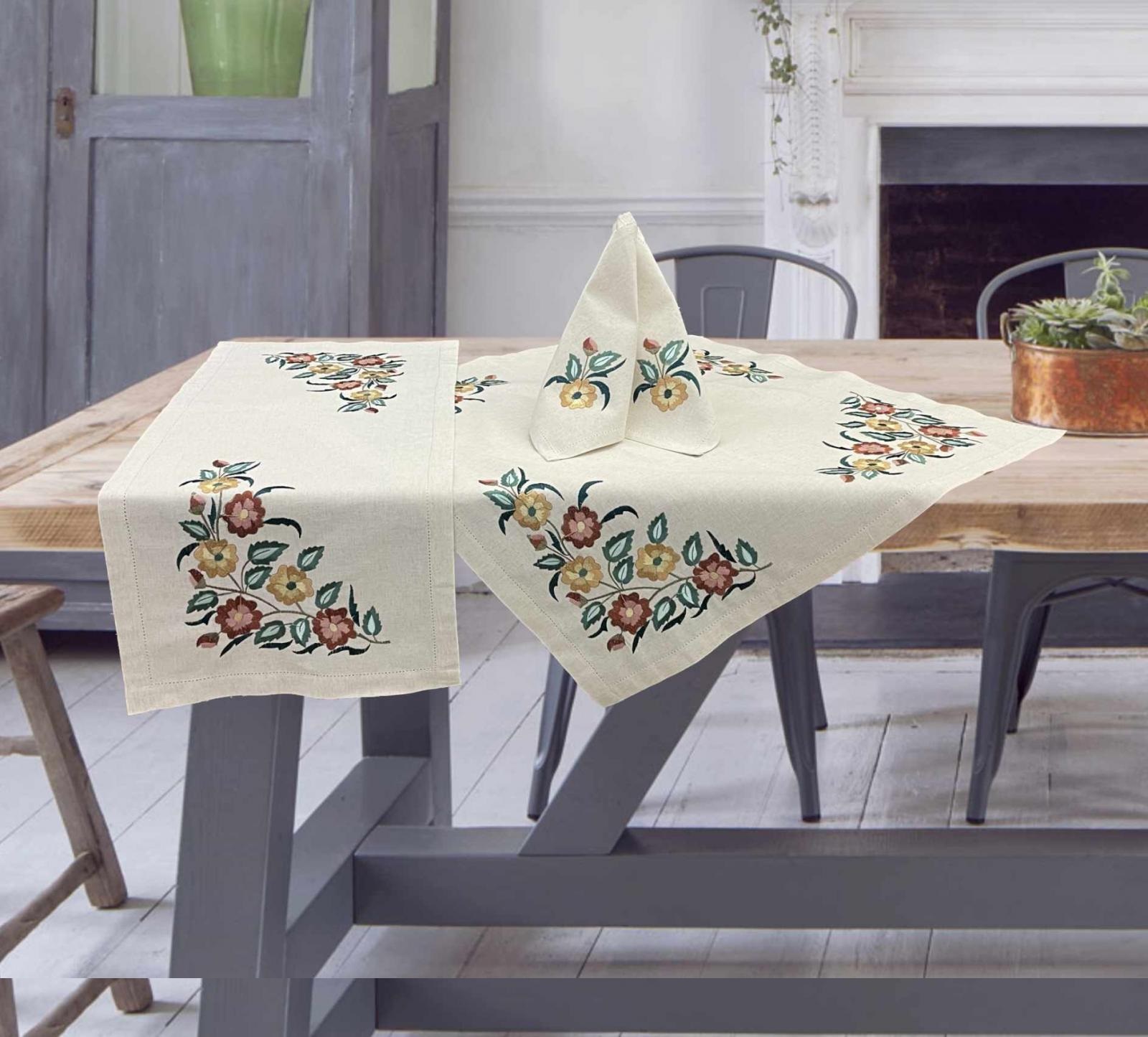 Λινό σετ 4 τμχ. με κέντημα και αζούρ.