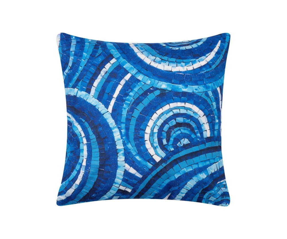 Σταμπωτή μαξιλαροθήκη με laser εκτύπωση πάνω σε ψαθωτό πανί με ζωντανά χρώματα και μοντέρνα σχέδια.