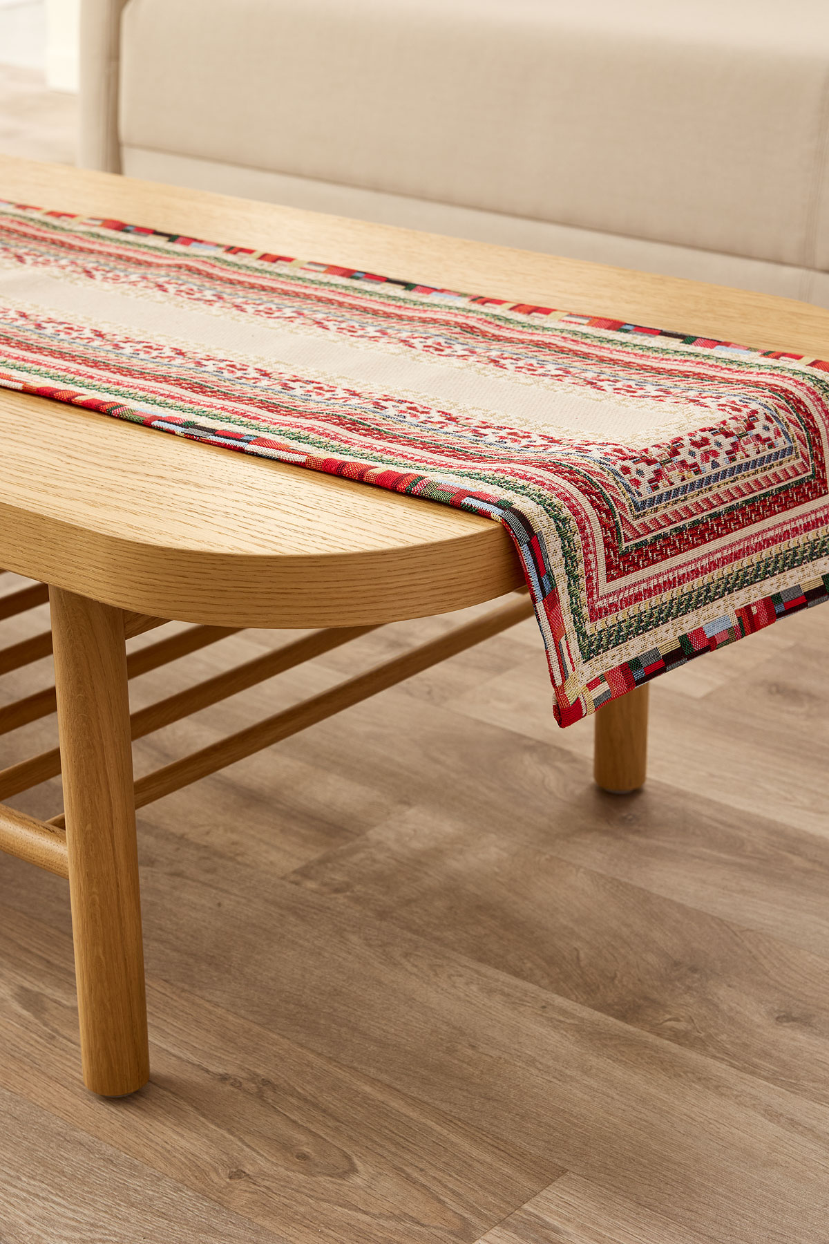 Τραβέρσα υφαντή με ύφασμα στόφας. Σύνθεση 40% βαμβάκι, 40% πολυέστερ και 20% ακρυλικό.