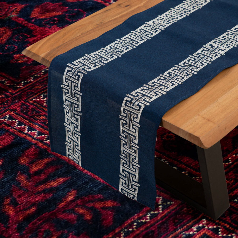 Τραβέρσα από λινό ύφασμα με κεντημένο σχέδιο.