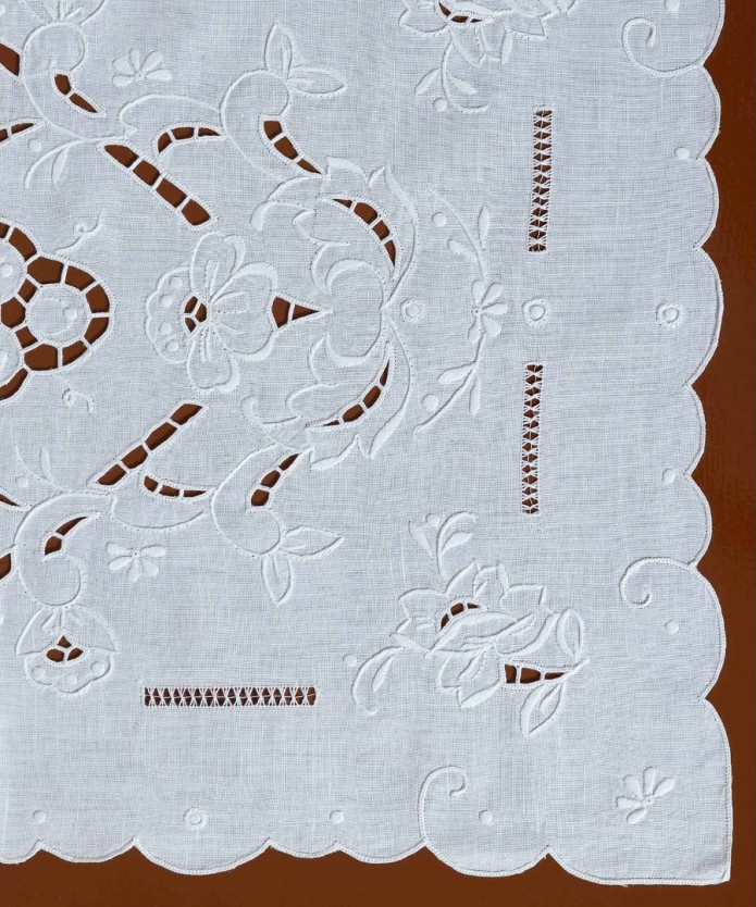 Χειροποίητο σετ 6 τεμαχίων με διακριτική κοφτή δουλειά. Σε λευκό χρώμα – 100% λινό. Το σετ περιλαμβάνει : σεμέν 35Χ90 εκ. , σεμεδάκι 35Χ76 εκ. , 2 σεμεδάκια 30Χ45 εκ. και 2 πετσετάκια 35Χ35 εκ.
