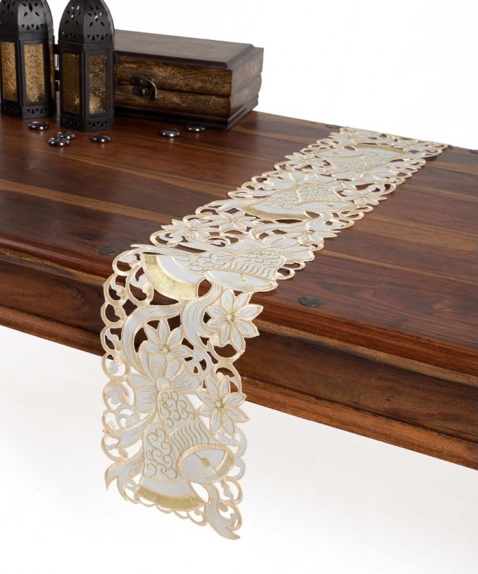 Διακοσμητική κοφτή τραβέρσα χριστουγεννιάτικη , 30Χ160 εκ. Σύνθεσης : 100% pollycotton – Σε ιβουάρ απόχρωση.