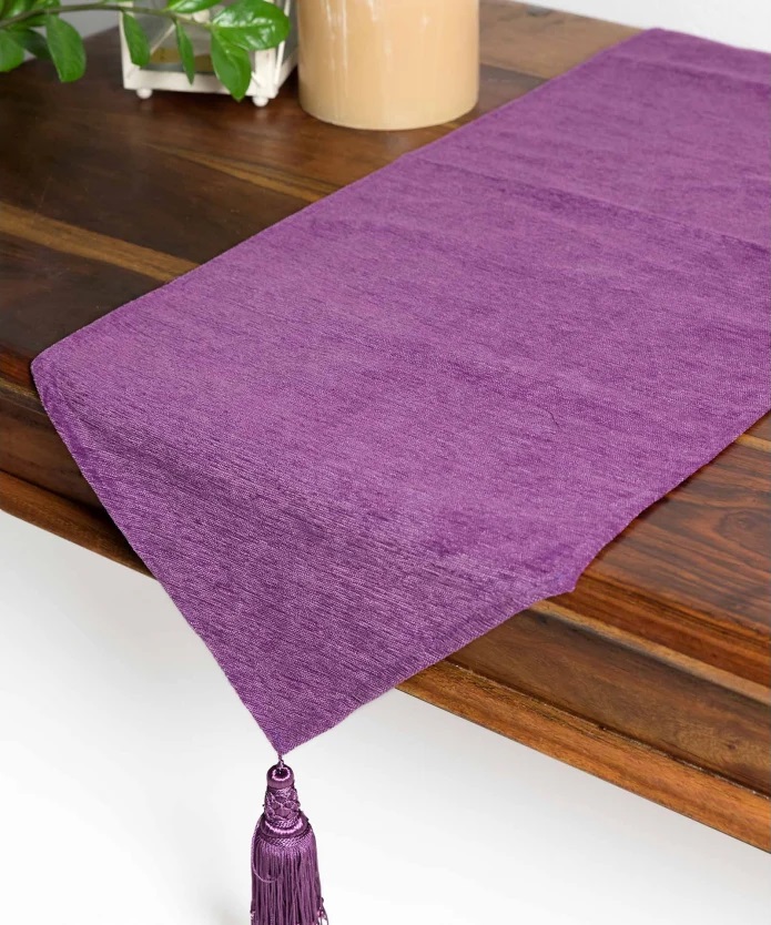 Μονόχρωμη διακοσμητική τραβέρσα με φούντες.